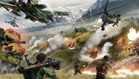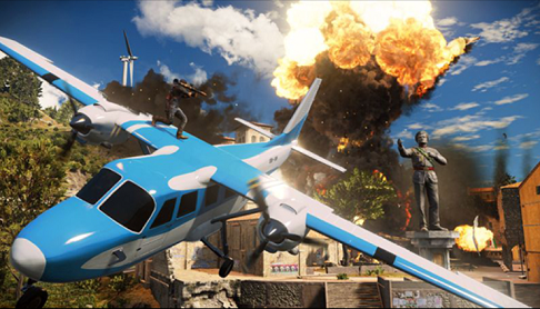 《正当防卫4》以虚构的南美洲索利斯世界为背景,最开始是男主角Rico非要一个人强行处理反派BOSS企图毁灭人类的邪恶计划,结果被恶劣的天气和BOSS基地的重重防御措施所阻碍,不仅救世计划没能得逞还惹得一鼻子灰,随即放弃独闯天下。同时,Rico接受了女主角建议的“独乐乐不如众乐乐”提案,决定通过发动人民的汪洋大海来对抗反派的邪恶计划。