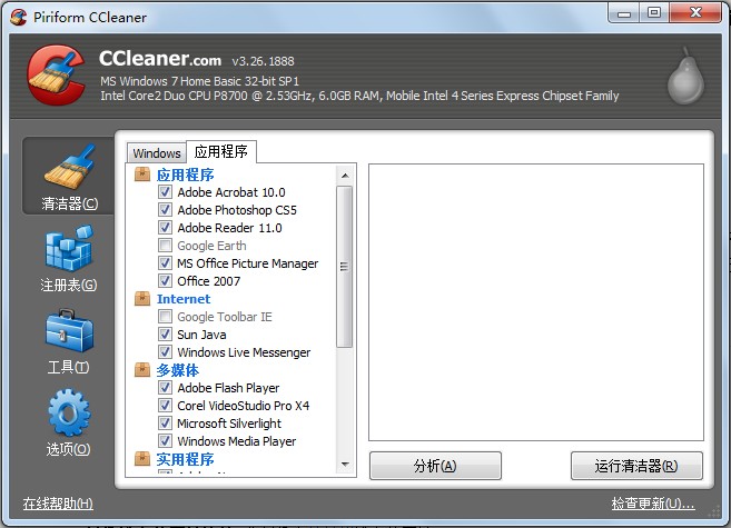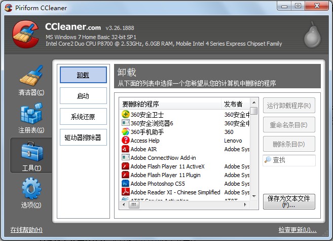 CCleaner是一个非常容易使用的国外免费磁盘清理工具.它可以快速 ,高效的帮你清除磁盘上无用的文件和垃圾文件!它支持对48种垃圾文件的清除!你只需3步就可以完成磁盘的清理工具!非常快速简单方便!