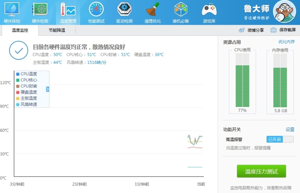 鲁大师是一款运行在PC上的硬件防护软件,鲁大师可以24小时全程监控硬件的状态,防止硬件高温,保护硬件,延长硬件寿命,对于硬件产生的垃圾,更为省心方便,分分钟清理优化,提高电脑的稳定高效运行,鲁大师全面的提升了电脑性能,你还有什么理由不使用。鲁大师(原名:Z武器)是新一代的系统工具。它能轻松辨别电脑硬件真伪,保护电脑稳定运行,清查电脑病毒隐患,优化清理系统,提升电脑运行速度。