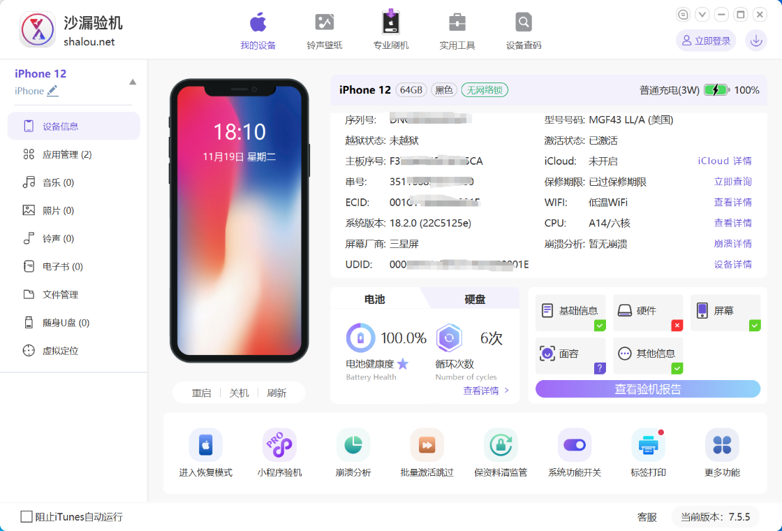 沙漏验机是一款多功能集一体的专业的手机刷机软件,手机刷机、验机(购买二手手机必备工具)、手机数据备份必备软件,上亿用户的共同选择,沙漏验机提供苹果正版海量应用APP、免费手机铃声、壁纸可一键下载,用户还可以通过沙漏验机管理手机文件、视频、照片、通讯录等资料。沙漏验机还可以手机垃圾清理,提升手机运行速度。更新通知:1、优化苹果刷机2、新增清监管锁提示功能3、优化数据迁移备份功能