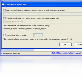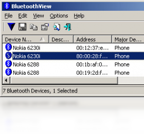 小巧的蓝牙设备监测工具。可在后台运行,并监测附近活动的蓝牙装置,可提供设备名称、蓝牙地址、主要设备类型、小规模的设备类型、首先检测时间、上次检测时间六项信息。当新的蓝牙装置被检测到时,会有一款气球在任务栏提示,并伴有响铃声音。