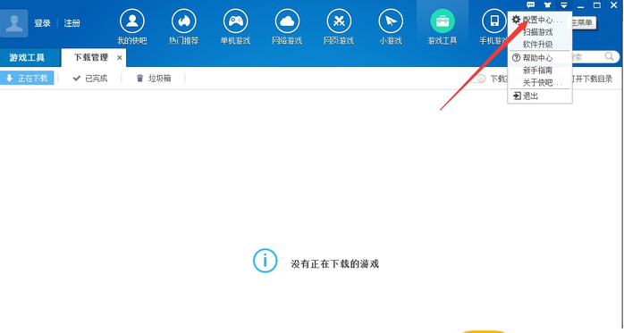 打开快吧游戏软件,点击右上角的设置按钮,选择【配置中心】→【下载设置】,在目录设置中可以修改游戏下载和安装的位置。