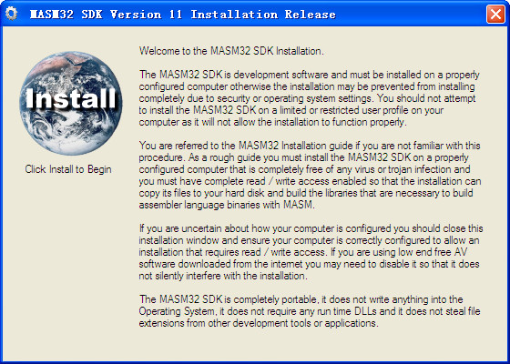 MASM32是汇编语言初学者必定接触的汇编语言学习软件,该MASM32安装后会启动DOS对话框,用户需要手动选择命令生成运行库和程序,生成完毕后软件即安装完毕。