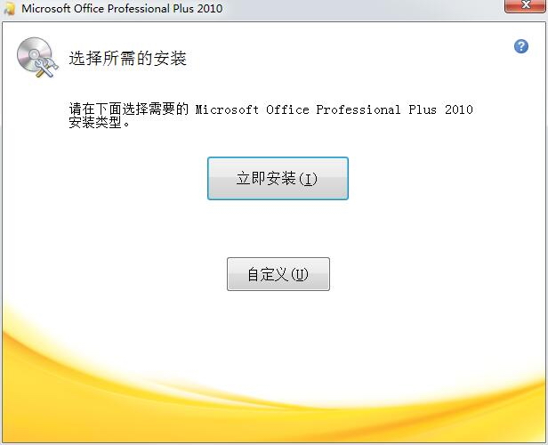 3、同意协议后进入到office 2010安装类型选择界面,在该界面中你可以选择【立即安装】或是【自定义】安装。如果你不需要设置什么东西图省事可以直接点击【立即安装】继续下一步。