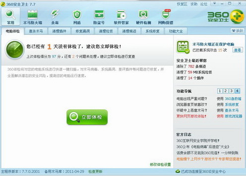 1、 电脑体检,相较于之前的版本,更加全面地扫描电脑,解决电脑存在或潜在的问题;