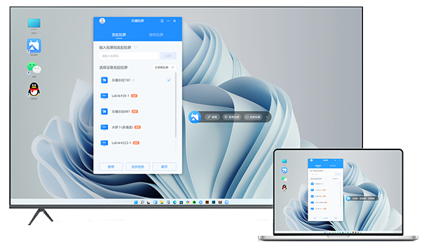 第一步:电脑、电视(投影仪)分别安装乐播投屏PC版、乐播投屏TV版