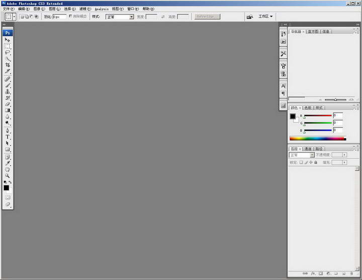 Photoshop CS5界面上非常大的改变是工具箱。不再是以往那般正经的工具箱,变成可伸缩的,可为长单条和短双条;