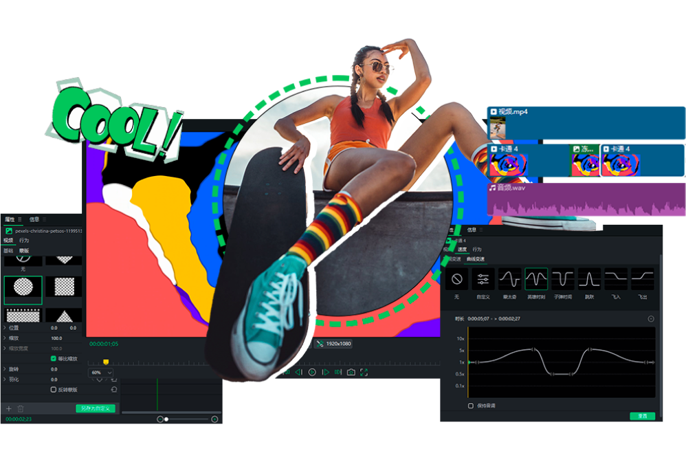 利用曲线变速和波纹编辑功能,让视频的加速和减速更加丝滑。