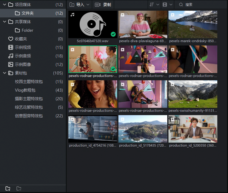 全新创意的素材特效包,包含文字、贴纸、动画、音效等等内容,让您的作品妙趣横生。