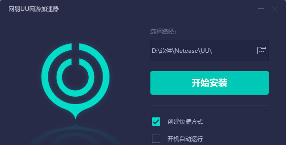 1、在本站下载网易UU网游加速器,双击.exe,出现一个安装界面,这里建议将文件安装在D盘,点击“开始安装”即可